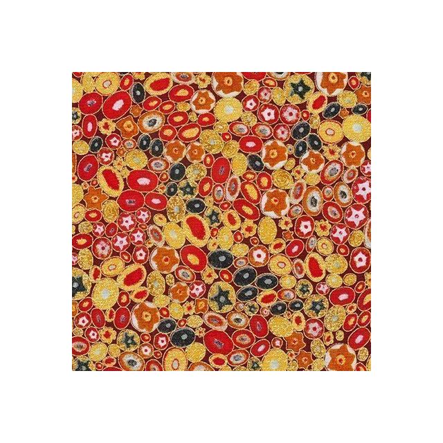 Tissu Robert Kaufman Gustav Klimt galets fleuris sur fond Rouge - Par 10 cm