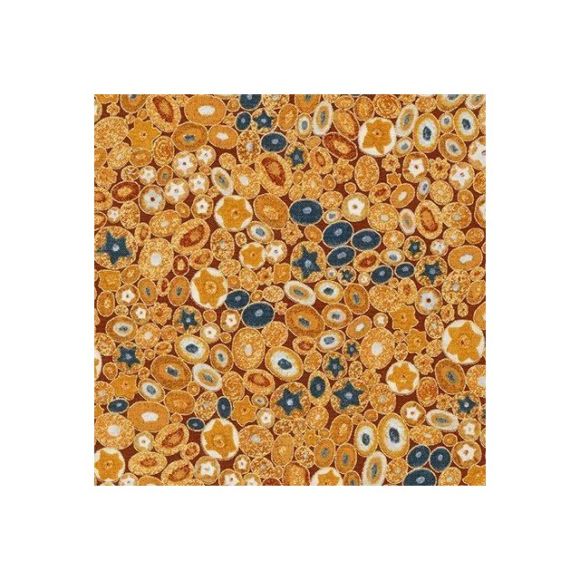 Tissu Coton Robert Kaufman Gustav Klimt galets fleuris sur fond Moutarde - Par 10 cm