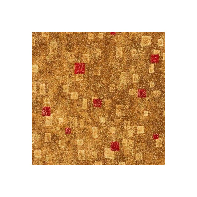 Prix Spécial 2,24 € Prix normal 2,49 €Tissu Coton Robert Kaufman Gustav Klimt rectangle rouge sur fond Or - Par 10 cm