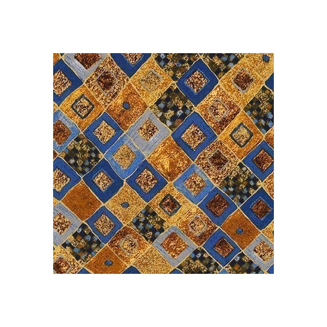 Prix Spécial 12,23 € Prix normal 13,59 €Tissu Coton Robert Kaufman Gustav Klimt losanges bleus sur fond Or - Par 10 cm