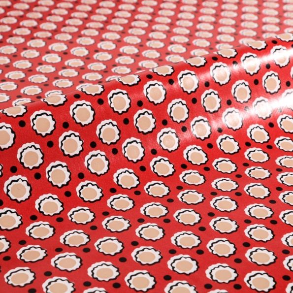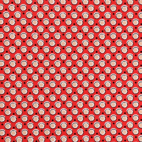 Toile Cirée Dita Fleurs blanches, noires et nude sur fond Rouge - Par 10 cm