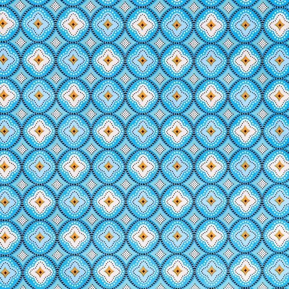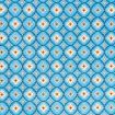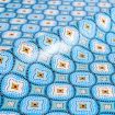Toile Cirée Ibiza Rosaces Bleu turquoise, bleu marine et blanches sur fond Bleu céladon - Par 10 cm