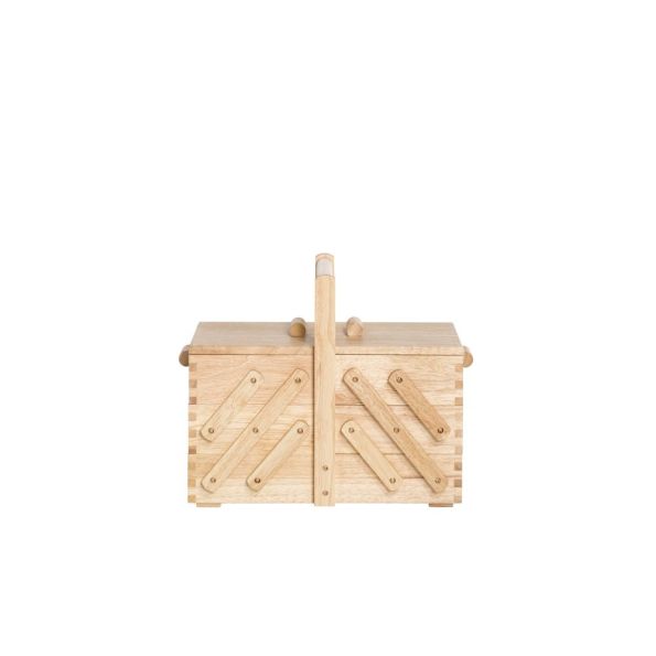 Avec son système populaire à accordéon, cette travailleuse en bois de couture offre un rangement sur trois niveaux. Adaptée au rangement de la mercerie de toutes tailles, elle accompagne avec élégance tous les travaux de couture. Avec son cloisonnement adaptable du compartiment supérieur, il est possible de moduler l'espace selon ses besoins.