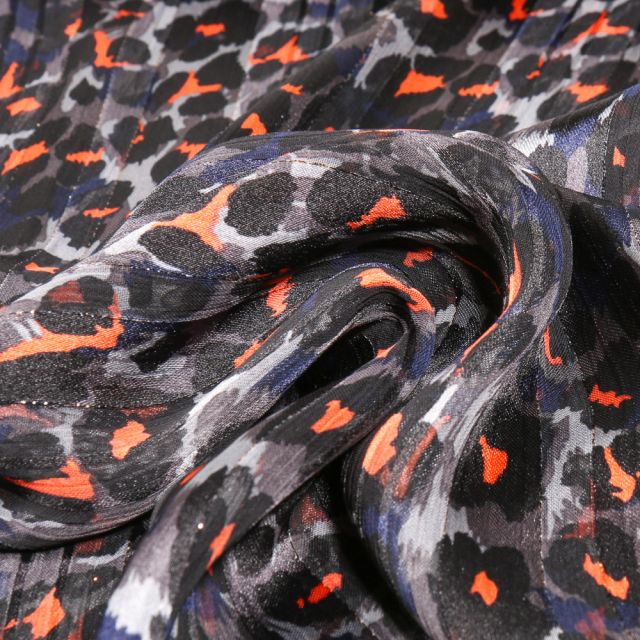 1. Tissu Bengaline Léopard sur fond Gris - Par 10 cm