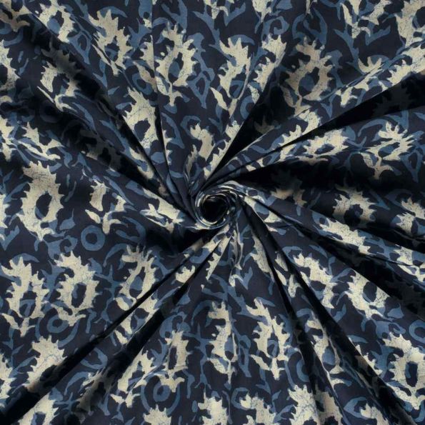 Tissu Voile de coton Batik Indigo Impress Divers sur fond Bleu indigo - Par 10 cm